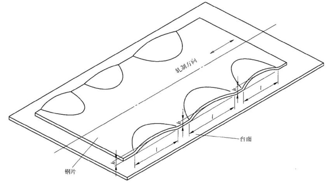 不平度:鋼板的不平度是指將鋼板自由地放置在平臺上測得的鋼板下表面和平臺間的最大距離,它包含中浪、邊浪、翹曲三種類型